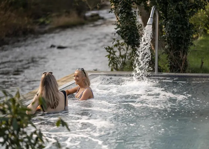 Galgorm, a 4-star Ballymena hotel with a 9.1/10 rating on Booking.com, features the renowned Thermal Spa Village, offering unique spa facilities among 182 hectares of parkland. This luxury accommodation provides various lodging options, including Log Cabins and Cottage Suites, suitable for families and groups.