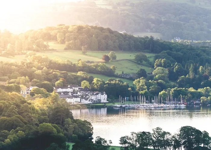 Low Wood Bay Resort & Spa features luxurious accommodations on the shores of Lake Windermere with exceptional views of the Lakeland fells. This 4-star Windermere hotel includes various dining options, relaxation facilities, and watersport activities. It holds an 8.5/10 rating on Booking.com.