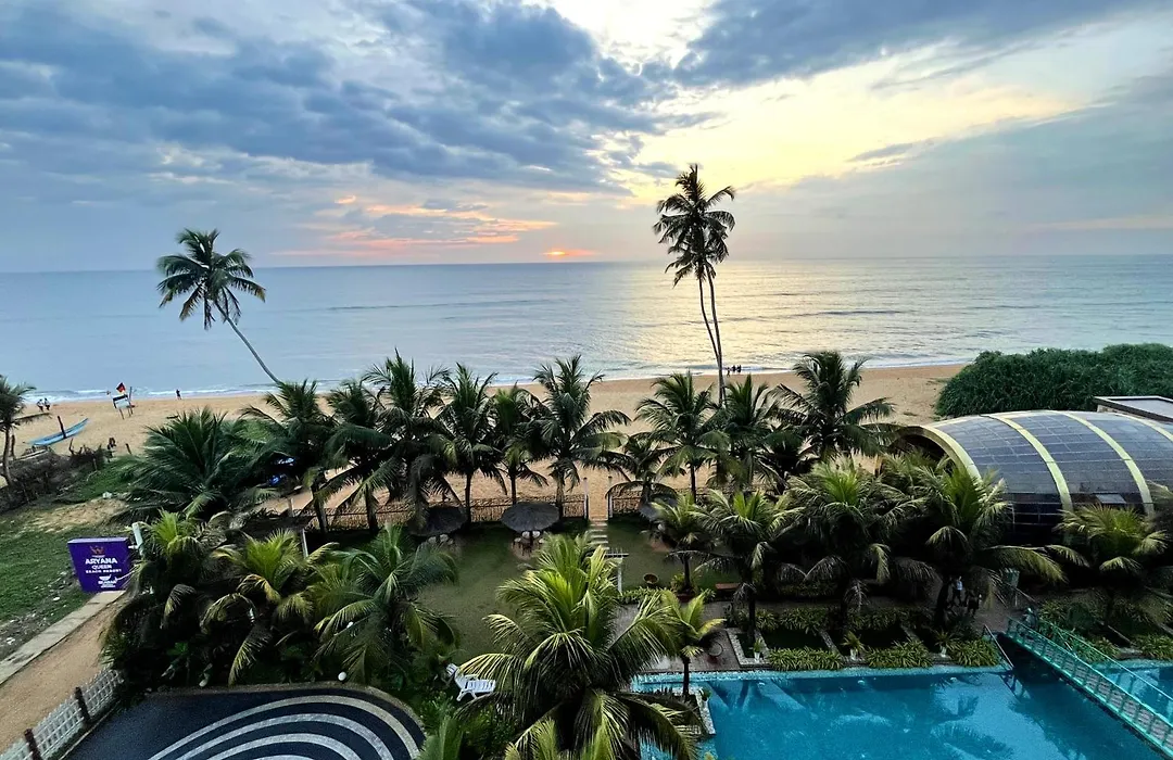 Leisure activities at the Aryana Queen Beach Resort include beach sports, fishing boat experiences, and spa treatments at the Ceylon Ayurveda Spa, focused on rejuvenation. The resort also offers a business center for corporate guests.
